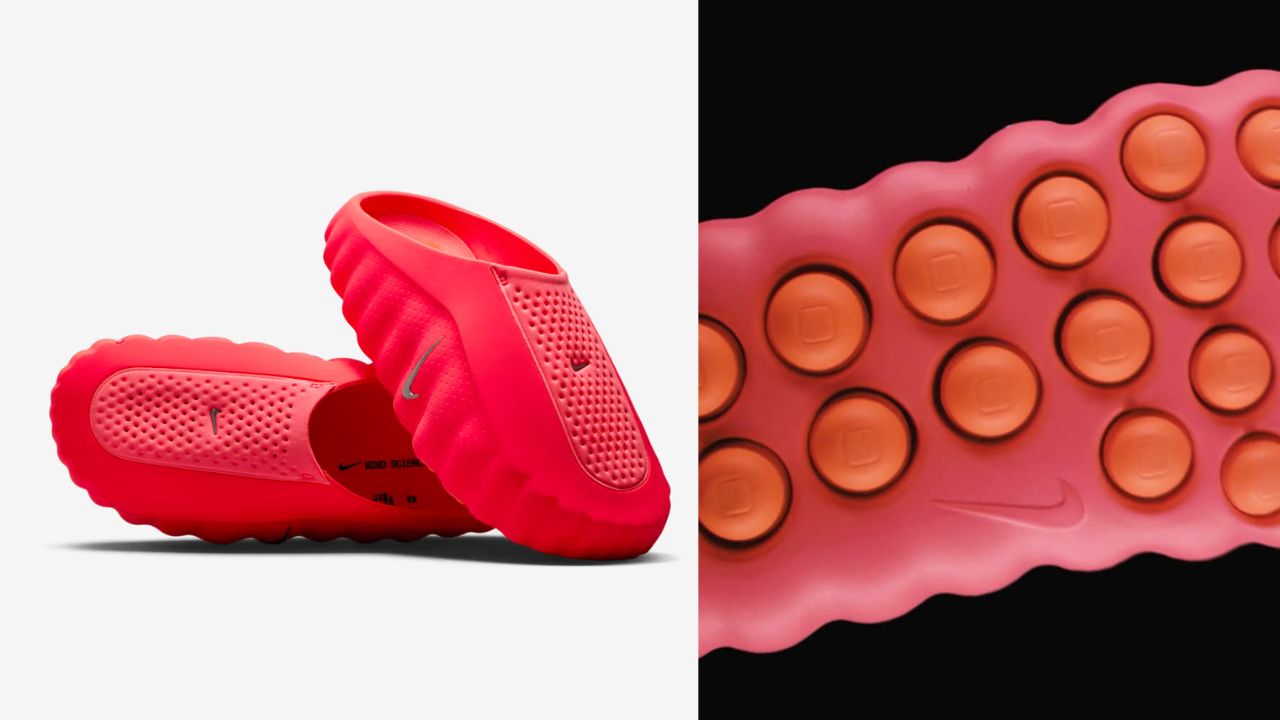 El modelo Nike Mind 001, estilo mule, está pensado para los momentos previos al entrenamiento, utilizando texturas internas que ofrecen una retroalimentación sensorial calmante para ayudar al usuario a centrarse en el "aquí y ahora".